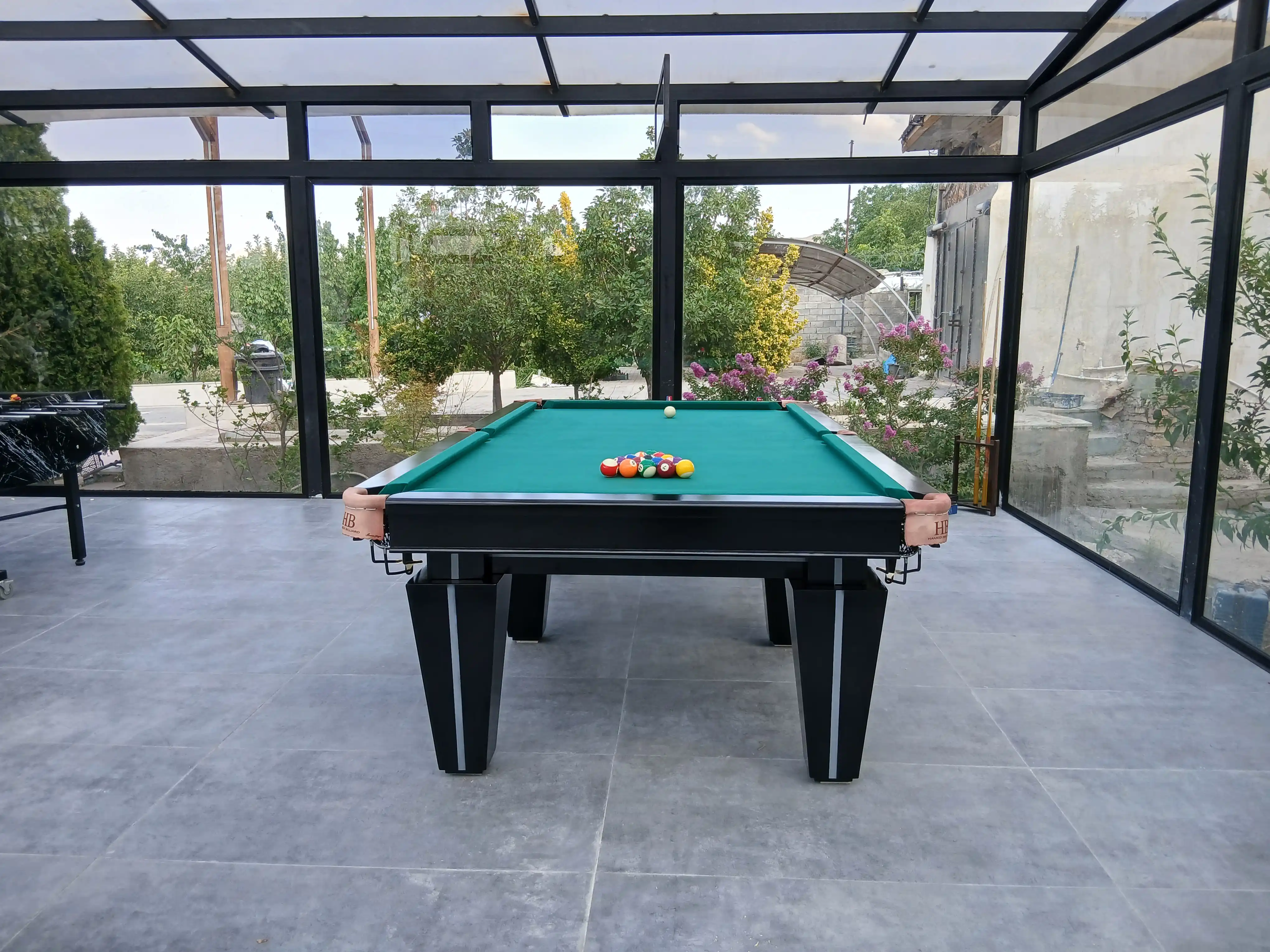 دقت کنید این مدل که توسط بیلیاردلند تولید میشود تماما چوب می باشد و با نمونه های مشابه که با ام دی اف ساخته می شوند کاملا از نظر کیفیت، دوام، ماندگاری و طول عمر اصلا قابل مقایسه نمی باشد .تفاوت سایز تغییری در قیمت ایجاد نمیکند شما می توانید بر اساس فضایی که دارید سایز متناسب خودتون رو سفارش بدید همه میزها با لوازم کامل بازی میباشند .محصولات دارای یکسال گارانتی (به جز لوازم مصرفی ) و 10 سال خدمات و پشتیبانی میباشند هزینه ارسال و حمل و نصب به عهده خریدار میباشد .زمان تحویل بین 7تا 10 روز کاری میباشد .رنگ بدنه میز و همچنین رنگ پارچه به سلیقه مشتری قابل انتخاب میباشد . ارسال به سراسر ایران انجام می شود